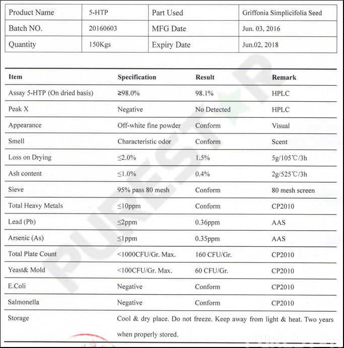 Specification: 5-HTP 20% 98% 99% By HPLC